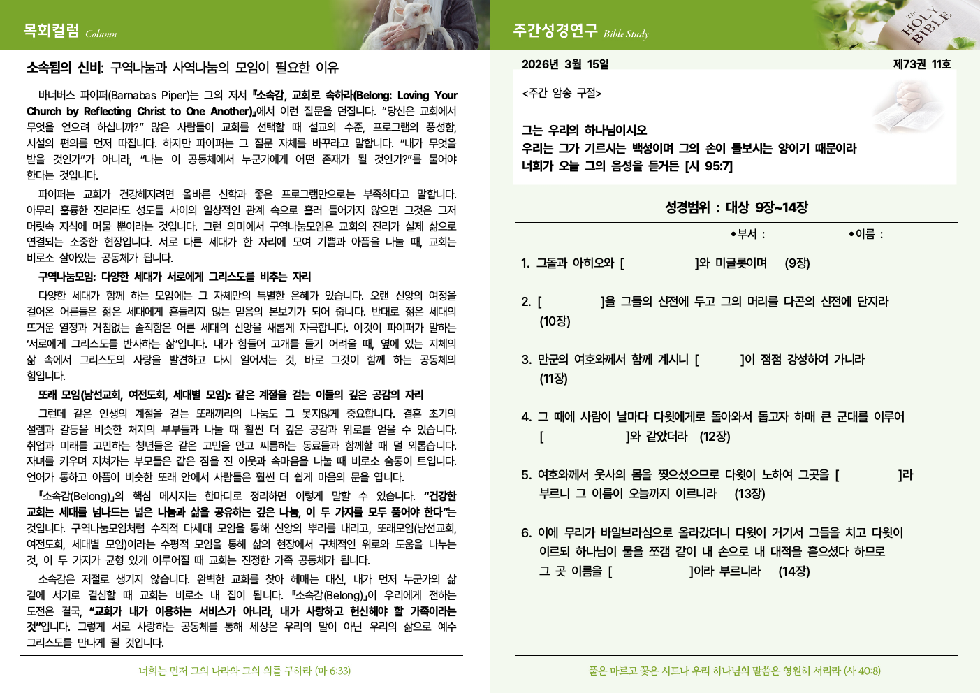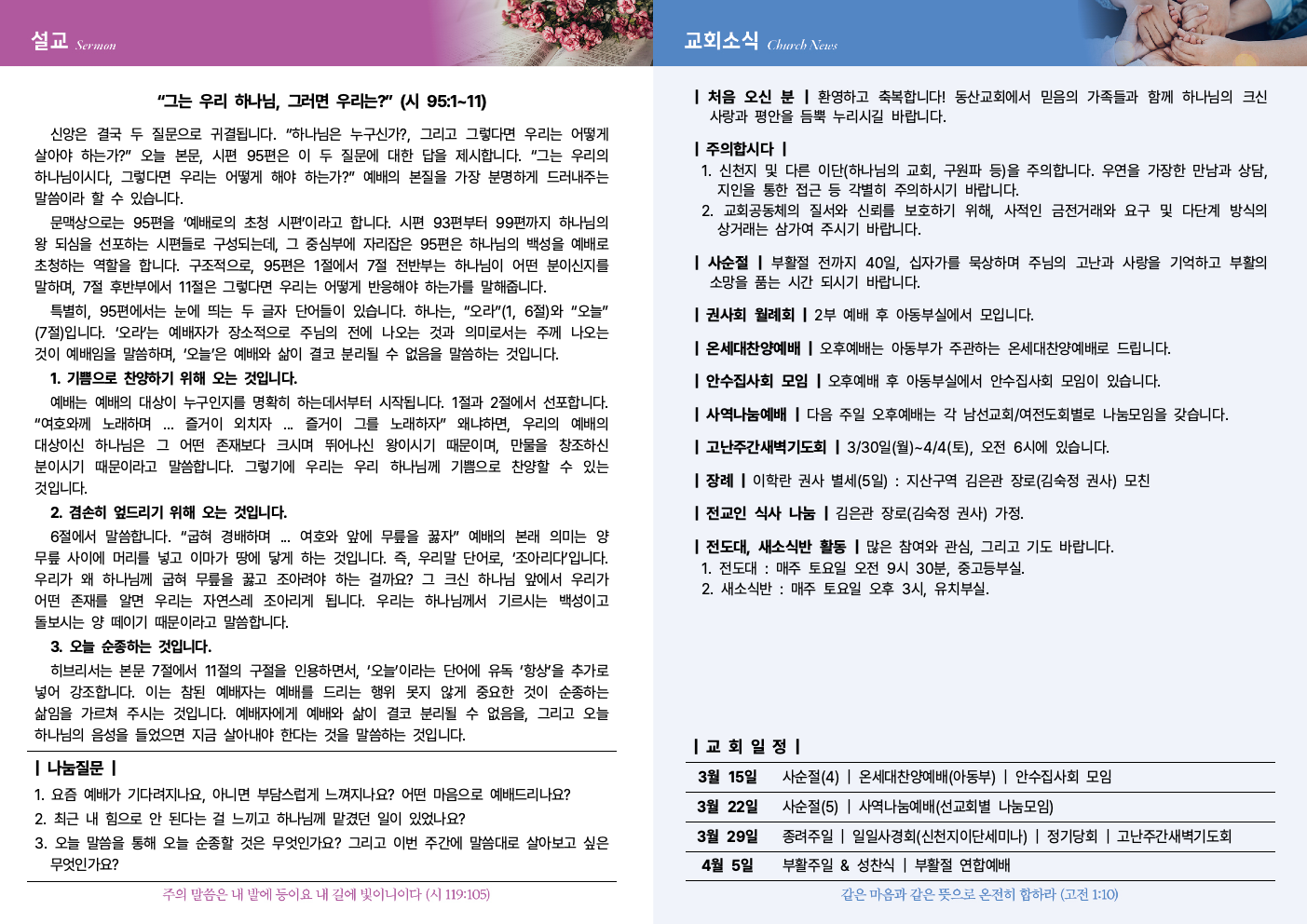 HOME > ³ª´®ÅÍ > ±³È¸¼Ò½Ä(ÁÖº¸)
